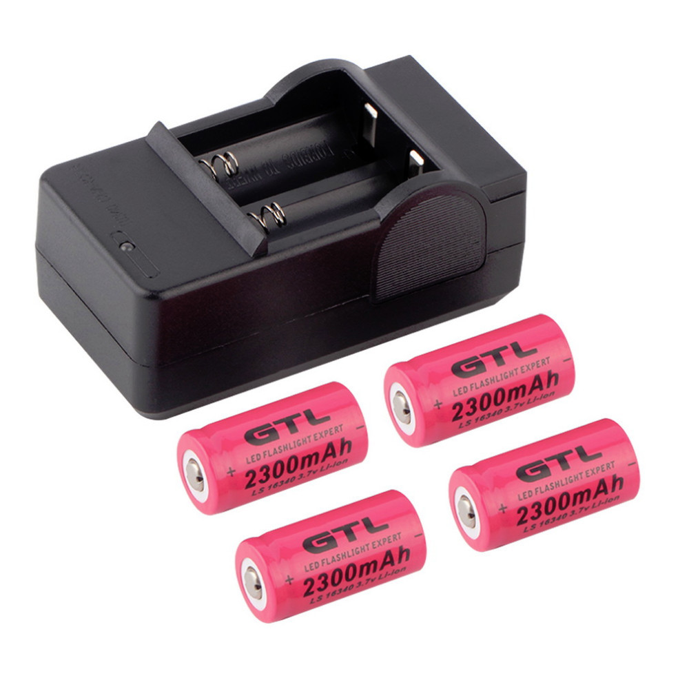 1Set 4 x 2300mAh 16340 Rechargeable Li-ion Battery For Flashlight+Battery Charger
