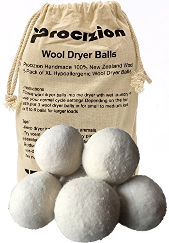 -. Title : Wool Dryer Balls XL Made of 100% Premium, Organic Wool, Handmade, Non-Toxic, All Natural Eco-Friendly Reusable Fabric Softener, 6 Pack