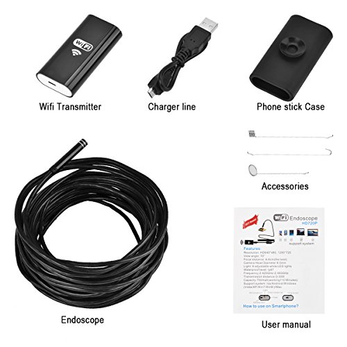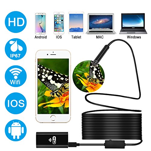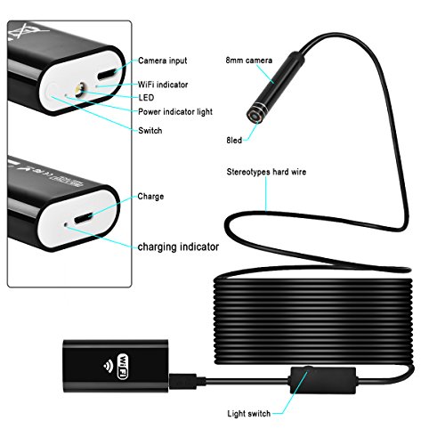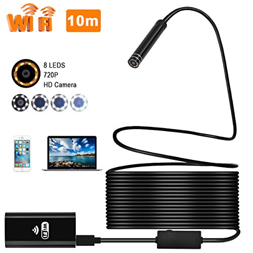 Epress Wireless WiFi Endoscope, 8mm Borescope Semi-rigid Inspection Camera 2.0 Megapixels HD Snake Camera for Android and IOS Smartphone, iPhone, Samsung, Tablet Macbook(10M)