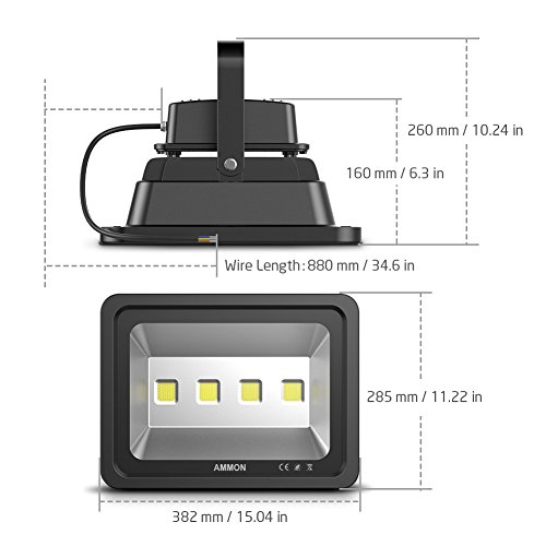 AMMON LED Flood Light, 200W Outdoor Waterproof IP65 20000lm Super Bright Flood Lamp Cool White 6000K Spotlight Lamp Daylight for Garden Yard, Party, Playground(black-200watt)