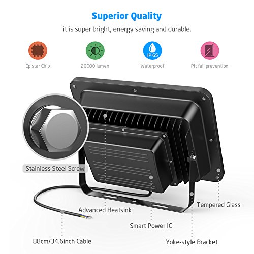 EXTREMELY LONG LIFESPAN: Service life up to 50,000 hours. IP65 waterproof standard, safety and favorable waterproof effect. Excellent heat dissipation. Durable and extremely high light transmittance Tempered Glass.