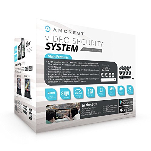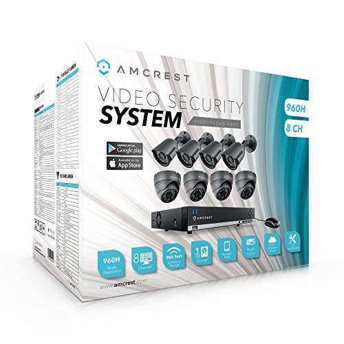 Amcrest 960H 8CH 1TB Security System - Eight 800+ TVL IP66 Bullet and Dome cameras (Black)