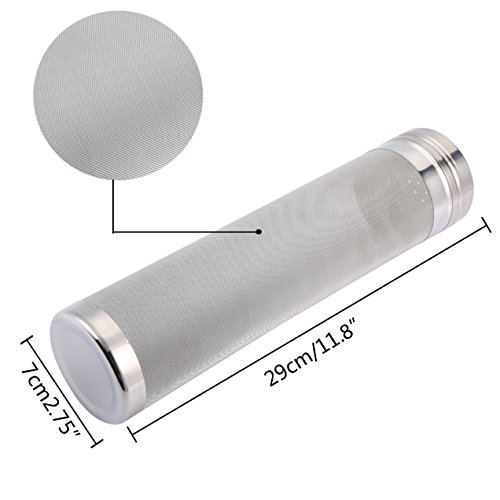 Brewing Filter - Made of stainless steel, features 300 micron mesh. The Filter measures 2.8'' x 11.8'', features a threaded top cap for easy removal - Allows hop oils / coffee / flavors to flow into your beer while keeping everything inside the filter. Perfect for Dry hopping in kegs, cold brewing coffee or filtering wine