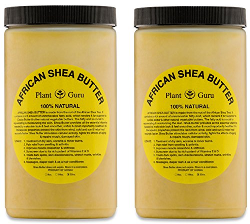 Plant Guru African Shea Butter 32 oz. (2 Pack) Raw Unrefined Grade A 100% Pure Natural Gold/Yellow Body Butters, Lotion, Cream, lip Balm & Soap...