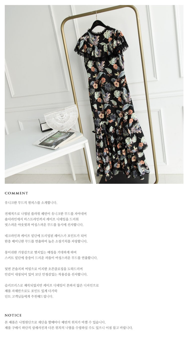 D9009 윙 레이스 러플 플라워 원피스 Black mix