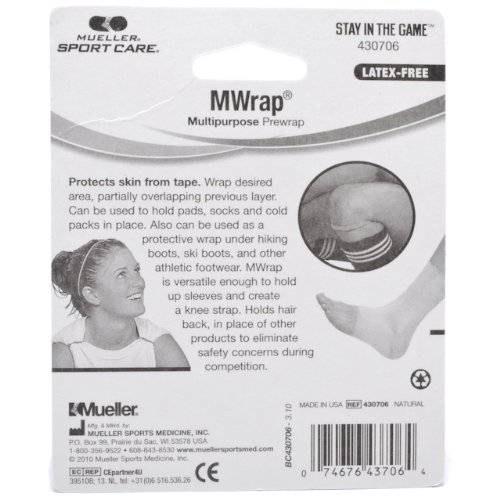 -. Binding : Misc. -. Brand : MWRAP -. EAN : 0074676437064 -. Feature : Pre-Taping Foam Underwrap Helps Protect Skin from Tape / Perfect for Holding Sleeves out of the Way, Protecting Skin from Tape and Holding Pads and Socks in Place / Mwrap Is the Fashion Forward-Solution for Teens - Both In and Out of the Game / Athletes Can Stay Focused on Their Game and Keep Those Flyaway Strands out of Their Eyes / 2.75 in x 21.4 yds -. Label : MUELLER SPORTS MEDICINE INC -. Manufacturer : MUELLER SPORTS MEDICINE INC -. MPN : 430706 -. PackageQuantity : 1 -. PartNumber : 430706 -. ProductGroup : Sports -. ProductTypeName : SPORTING_GOODS -. Publisher : MUELLER SPORTS MEDICINE INC -. Studio : MUELLER SPORTS MEDICINE INC -. Title : Mueller Mwrap Multi-Purpose Wrap, Latex free, Natural - Each -. UPC : 074676437064