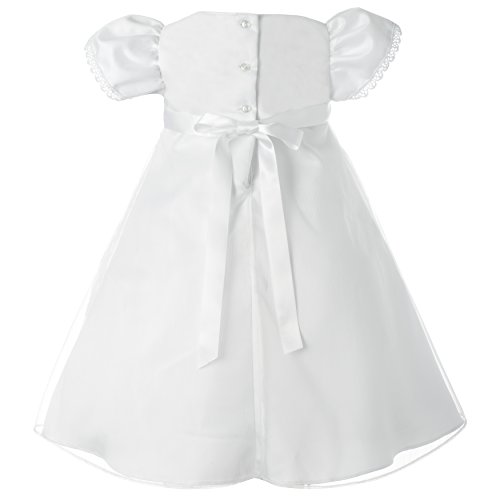 newborn christening baptism special occasion sheer over satin dress gown outfit with split front double layered flowing skirt design