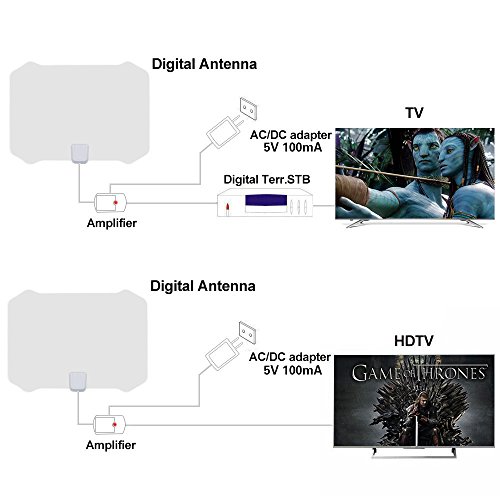 Setting and Connections: 1.Light as a Feather, allows you to place it anywhere. 2.Match your home decoration can be easily hidden behind a picture, bockshelf or television. 3.Fast and easy set up with 3 steps-Unwrap,Plug it in and Scan channels. 4.you can put it higher on wall; lay flat on table; on window,(strongly recommended),and it will provide you with opportunities to watch crystal clear digital HD showsl. 5.if you don 't want to stick the antenna on the wall/window,the TV antenna stand. Allows you to move the antenna freely.
