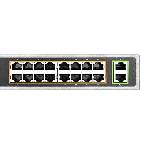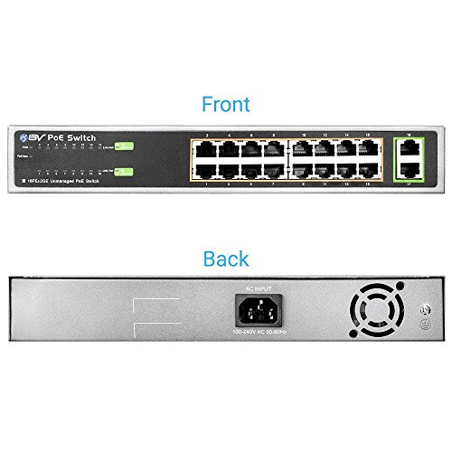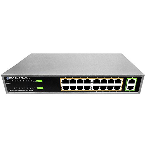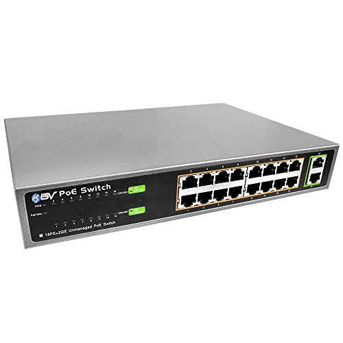 BV-Tech 16 Port PoE+ Unmanaged Switch + 2 Gigabit Ethernet Uplink – 130W – 802.3at – POE-SW1602A