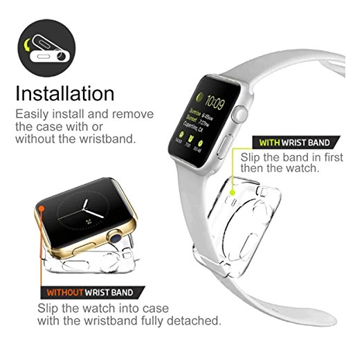 -. Feature : Ultra slim, lightweight, soft TPU case offers a flexible touch-sensitive and full-body protection for both front and back of device from scratches, cracks, or damage / Precise cutouts for all ports, buttons, and speaker, easy access to all features and controls / Ultra-thin transparent protection, show the real color of the watch / The clear shield case is made to show off the natural beauty of your Apple Watch Model / It adds beauty and elegance to your watch with tangible protection for its body. Nice and simple design, eco-friendly material, please purchase with confidence