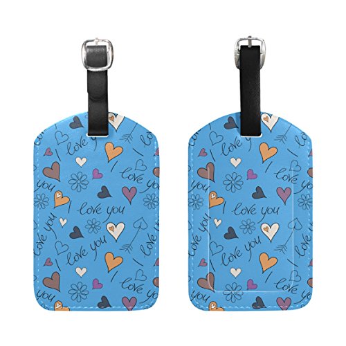 (My Little Nest)/Accessories/Luggage, Bags Travel/DIRECT FROM USA/Travel Luggage Tag Doodle Hearts I Love You PU Leather Baggage Suitcase Tag Name Address ID Lab...