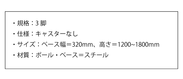 ●サイズ:ベース幅=320mm、高さ=1200~1800mm