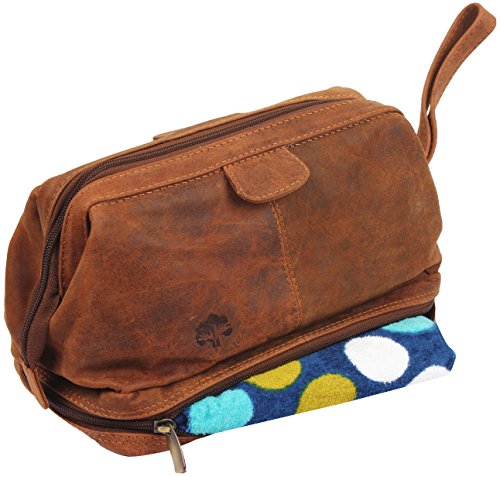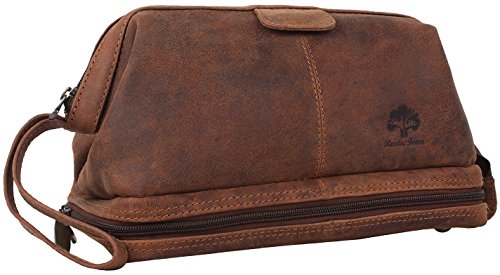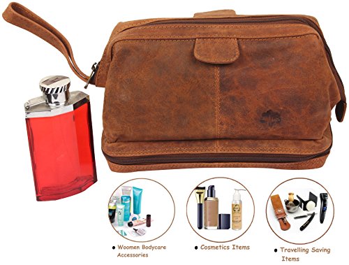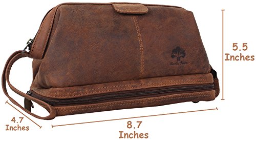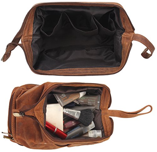 Handmade Buffalo Genuine Leather Toiletry Bag Dopp Kit Shaving and Grooming Kit for Travel ~ Gift for Men Women ~ Hanging Zippered Makeup Bathroom Cosmetic Pouch Case by Rustic Town ( Brown )