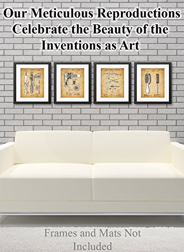 Bring a little whimsy to your household. These four prints show patents filed between 1870 and 1962. The original patent artwork has been reinterpreted by award winning artist Norm Lanier.