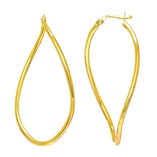14K Yellow Gold Twisted Oval Hoop Earrings