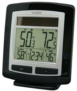 -. Feature : Indoor temperature and humidity / Wireless outdoor temperature and humidity / Solar powered panels on both display and sensor / Minimum and maximum temperature values / 200 ft. transmission range