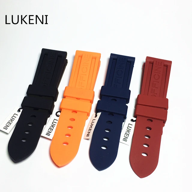 | [해외]Lukeni 22 미리메터 24 미리메터 26 미리메터 블랙 블루 orange 레드 방수 실리콘 고무 손목 시계 스트랩 팔찌 함께 pam 로고 버클 |