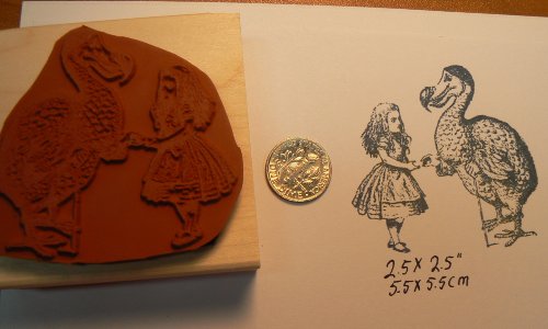 -. Title : Alice in Wonderland and Dodo Bird Rubber Stamp Wood mounted P13