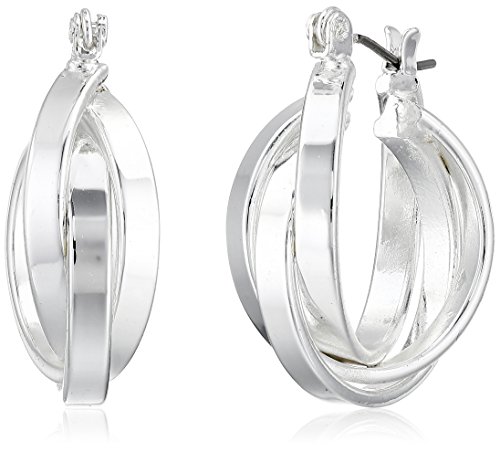 Silver-tone earrings featuring interlocking triple hoops and click-top finding