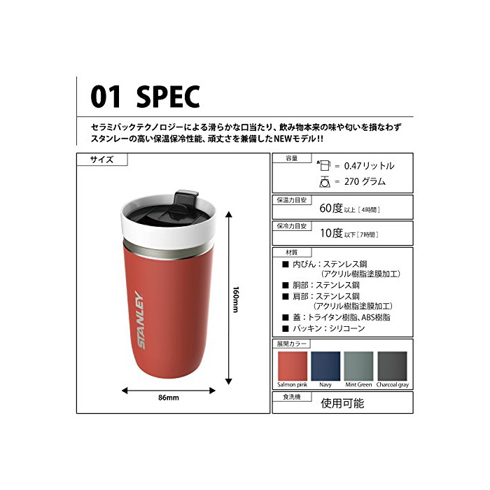 원본상품명: STANLEY(スタンレ?) 2018年モデル ゴ?シリ?ズ セラミバック ?空タンブラ? 0.47L パイント (日本正規品)