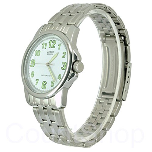 Brand, Seller, or Collection Name:Casio Model number:EAW-MTP-1216A-7B Part Number:MTP-1216A-7BDF_WW Item Shape:Round Dial window material type:Mineral Display Type:Analog Clasp:Fold-over-clasp Case material:Stainless steel Case diameter:22 millimeters Case Thickness:8.50 Band Material:Stainless Steel Bracelet Band length:Men's Standard Band width:18 millimeters Band Color:Silver Dial color:White Bezel material:Stainless steel Calendar:No Special features:Analog Item weight:4.80 Ounces Movement:Quartz