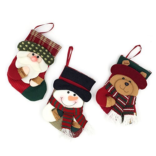 Samll Size Christmas Hanging Stockings, Decors Santa Gift, 3D Xmas Socks Candy Gift By YAMUDA (set of 3-B)