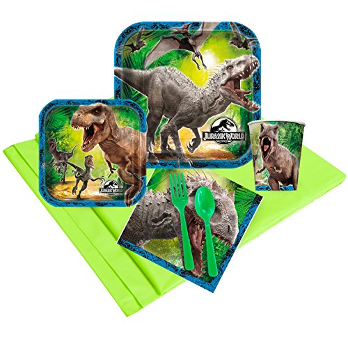 -. Feature : Jurassic World 24 Guest Party Pack includes 24 dinner plates, dessert plates, cups, forks, spoons, 40 lunch napkins, 2 solid table clothes. / Add additional party tableware, decorations, favors, games, and activities to complete your celebration and entertain your guests. / Great for childrens birthday parties, kids school parties, a pizza party, or a theme party. / Perfect for fans of Jurassica Park, Jurassic World, dinosaurs, or prehistoric animals.