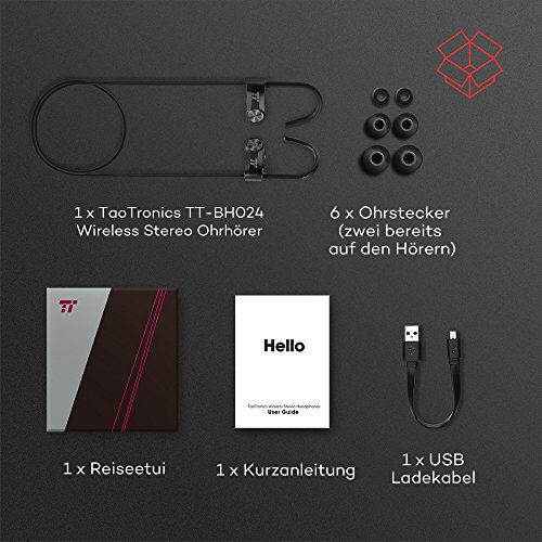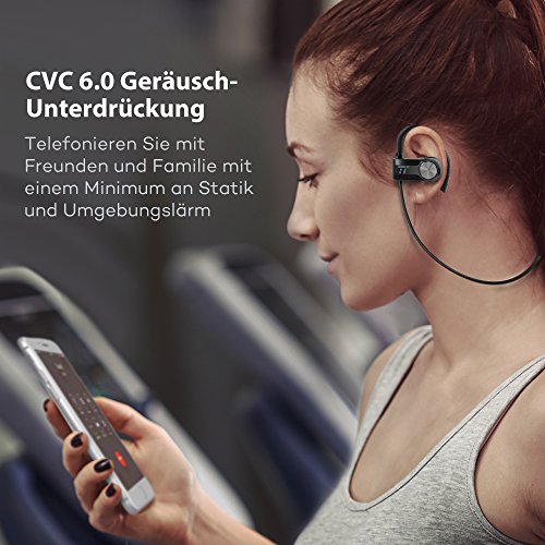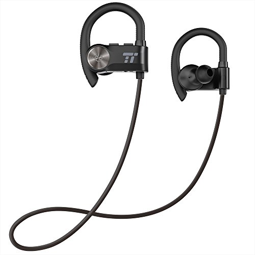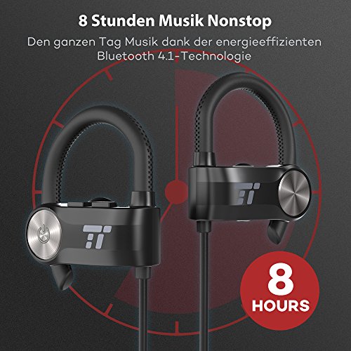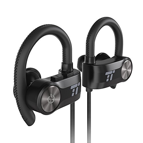 TaoTronics Bluetooth Kopfhorer Wireless Sport Headset In Ear Kopfhorer Anpassbare Ohrhaken IPX5 Wasserfest & Schweissresistent, AptX Verlustfreier Sound, 8 Stunden Spielzeit