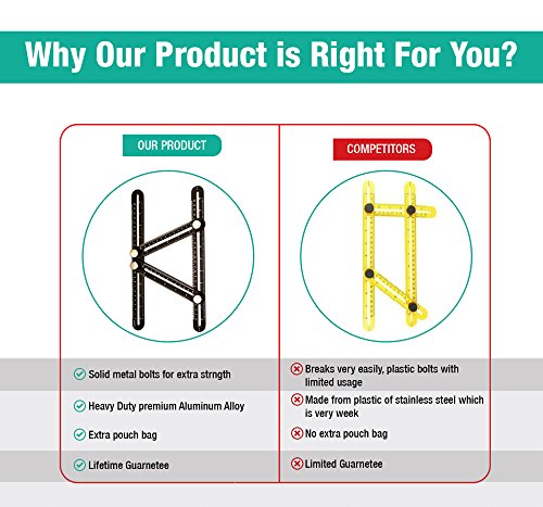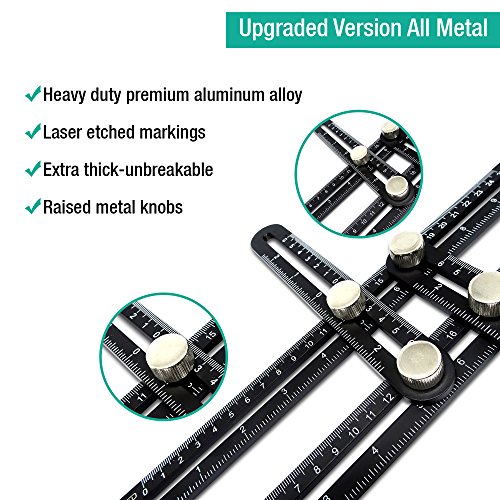 - {UPGRADED MATERIAL}: Premium heavy duty upgraded aluminum alloy material, this 4 sided multi angle measuring ruler is super durable and sturdy, locks tight, and releases easily