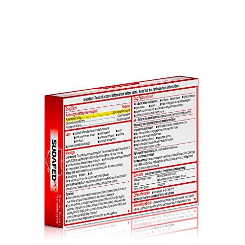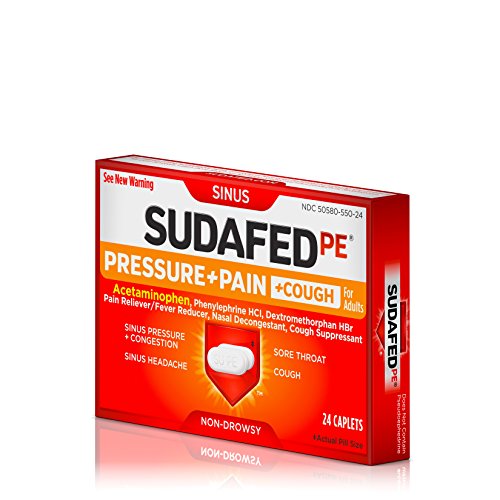 ReleaseDate : 2016-07-25 Studio : Johnson Johnson - Ketotifen Publisher : Johnson Johnson - Ketotifen Binding : Health and Beauty Product Description Sudafed PE Pressure Pain Cough relieves coughing, congestion, and sore throat. Each non-drowsy caplet contains acetaminophen, a pain reliever and fever reducer; phenylephrine HCl, a nasal decongestant; and dextromethorphan HBr, a cough suppressant. Sudafed PE Pressure Pain Cough temporarily relieves common cold and flu symptoms, including sinus pressure and congestion, sinus headache, nasal congestion, cough, sore throat, fever, and minor aches and pains. It also promotes nasal and sinus drainage and temporarily reduces fever. 0