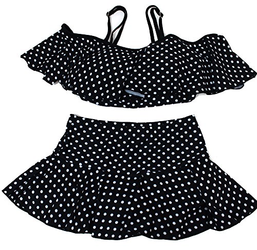 -. Feature : トレンドのバンドゥビキニ♪ / 可愛く体型カバー♪ / ドット柄オフショルダー スカート付上下セット水着