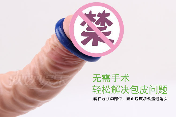 Second, there prepuce students attention : the foreskin glans to the bottom line and then put a crown ring ditch at the bottom of the glans , which is shown in the following figure wearing a blue bad position , long wear can effectively play a complex role in blocking the foreskin Oh !