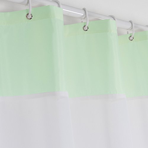 Eforcurtain Home Fashion Mint Green Polyester Fabric Bathroom Curtain Waterproof Mildew Resistant, White Organza Stitching Shower Curtain Sets 72-Inch x 78-Inch Extra Long