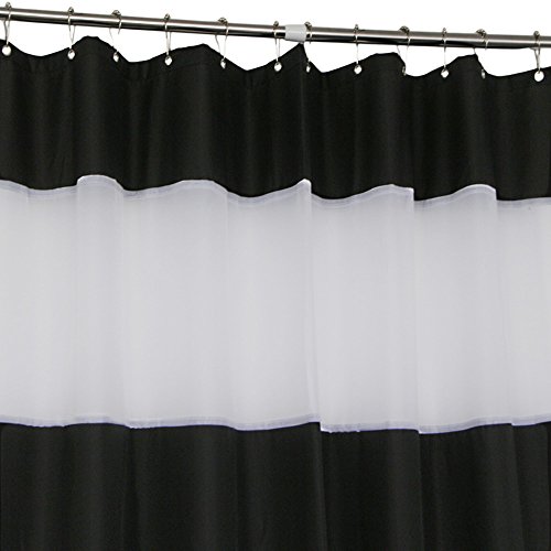 Eforcurtain Solid Black Bath Curtain with White Organza Decor, Chic Design Polyester Fabric Shower Curtains Mildew Resistant and Waterproof, Standard Size 72" x 72"