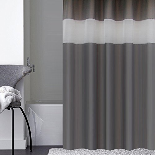 Eforcurtain Contemporary White Organza Top Shower Curtain Standard Size 72 x72 Inch, Easy Care Charcoal Polyester Fabric Bathroom Curtain Water Resistant Mildew Resistant