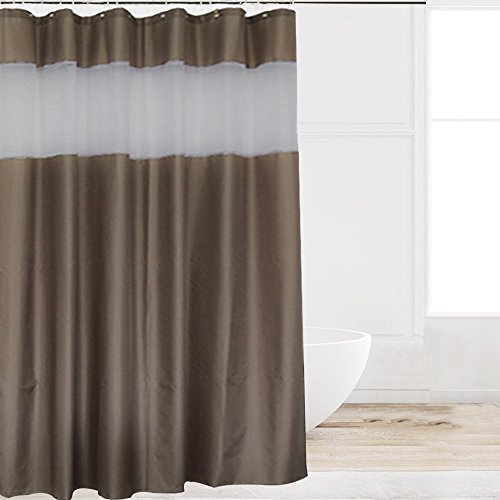Eforcurtain Shabby Chic Anti-Water Shower Curtains with White Organza Stripe Top, Standard Size Nontoxic Brown Cloth Bath Curtains Mildew Proof for Hotels 72 X 72 Inches