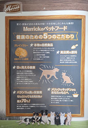 素材構成:粗たんぱく質:38.0%以上、粗脂肪:17.0%以上、粗繊維:3.5%以下、粗灰分:11.0%以下、水分:11.0%以下、オメガ6脂肪酸:4.5%以上、オメガ3脂肪酸:0.4%以上、グルコサミン塩酸塩:1200mg/kg以上、硫酸コンドロイチン:1200mg/kg以上、エネルギー:約374kcal/100g