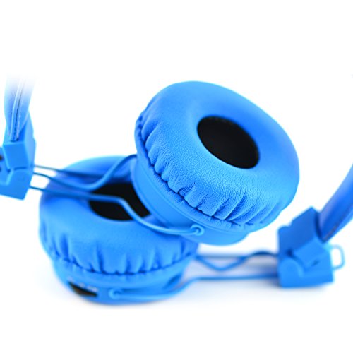Wireless Headphones,GranVela XP1 Multifunctional Foldable Bluetooth Headset with Microphone,Micro SD Card Player and Built-in FM Radio, Volume limiting for Kids (Blue)