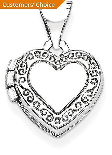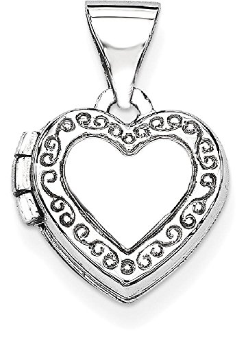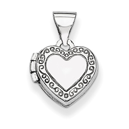 ICECARATS DESIGNER JEWELRY 14K WHITE GOLD HEART SHAPED SCROLLED PHOTO PENDANT CHARM LOCKET CHAIN NECKLACE THAT HOLDS PICTURES