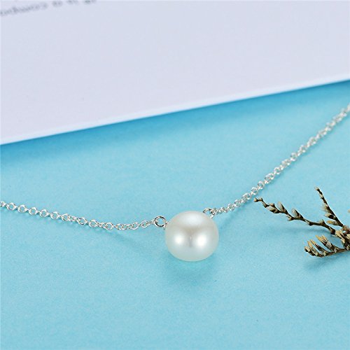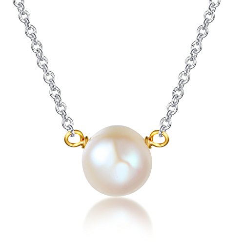 Handmade necklace arranged on keepsake card and featuring single pearl pendant suspended from cable chain