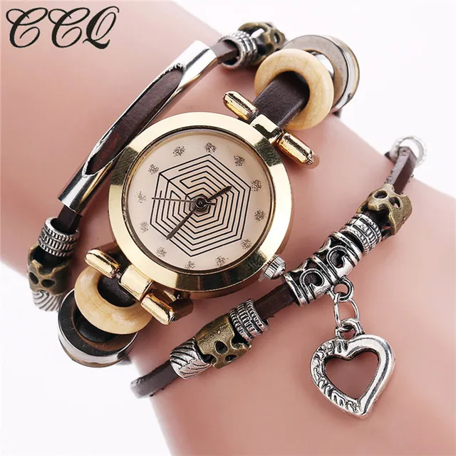 상품 내용 CCQ 럭셔리 브랜드 빈티지 소 가죽 팔찌 시계 여성 손목 시계 여성 드레스 석영 시계 특징: