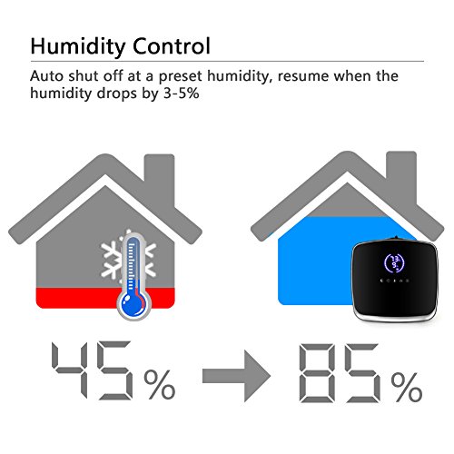 - 【Set Humidity Level& Timer Settings】: With the touch sensitive LED display, it can be set humidity level as you wish; Timer Mode (available for timing 1 to 9 hours) and sleep Mode( turns off the digital display but still working)would be perfect for your sound sleep.