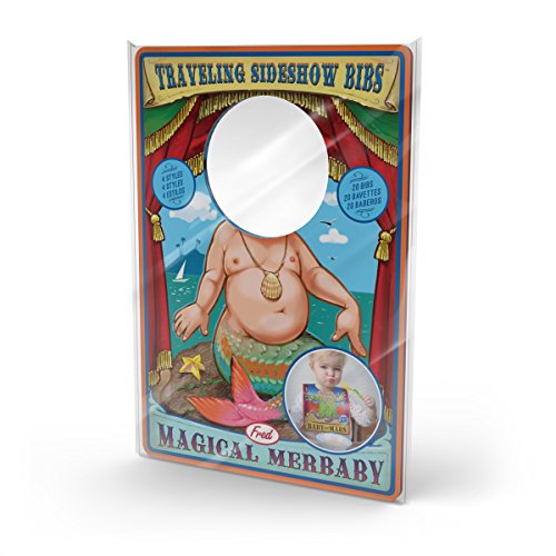 -. Binding : Kitchen -. Brand : Fred & Friends -. EAN : 0728987024221 -. Feature : See your baby or toddler become the Main Attraction during meal or snack time with these fun bibs / This pad of 20 bibs features 4 different, fun sideshow designs; 5 of each / These bibs are made from waterproof, nonwoven polypropylene / Each picture is P.R.Inted with baby-friendly soy ink which is also environmentally friendly / The pad-like design keeps the bibs neat and are perfect for dining at home or on the go -. Label : Lifetime Brands -. Manufacturer : Lifetime Brands -. Model : 5159488 -. MPN : 5159488 -. PackageQuantity : 1 -. PartNumber : 5159488 -. ProductGroup : Baby Product -. ProductTypeName : HOME -. Publisher : Lifetime Brands -. ReleaseDate : 2015-09-15 -. Studio : Lifetime Brands -. Title : Fred & Friends TRAVELING SIDESHOW Reusable Bibs, 20 Count -. UPC : 728987024221