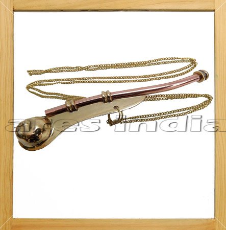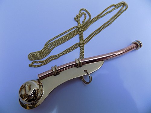 Ares India 5" Brass Copper Boatswain Whistle With Chain Bosun Call Pipe Maritime Nautical