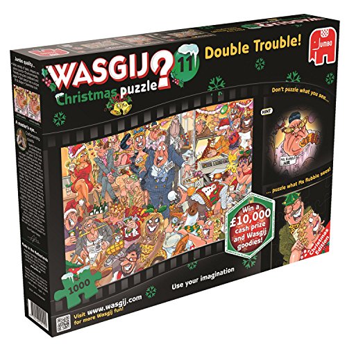 -. Binding : Toy -. Brand : Wasgij -. EAN : 8710126191125 -. Feature : A 1000 piece Wasgij jigsaw puzzle / Wasgij Christmas follows the same Wasgij Original concept of 'what are they looking at?' / The puzzle image has been illustrated by the talents artist - James Alexander / The puzzle has been produced using a high quality cardboard / The finished puzzle measures 68x49cm (approximately) -. IsAdultProduct : 0 -. Label : Jumbo Games -. Manufacturer : Jumbo Games -. Model : 19112 -. MPN : 19112 -. NumberOfItems : 1 -. PackageQuantity : 1 -. PartNumber : 19112 -. ProductGroup : Toy -. ProductTypeName : TOYS_AND_GAMES -. Publisher : Jumbo Games -. Studio : Jumbo Games -. Title : Jumbo "wasgij Christmas 11 Double Trouble Jigsaw Puzzle (1000-piece)