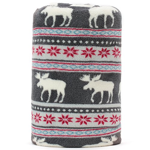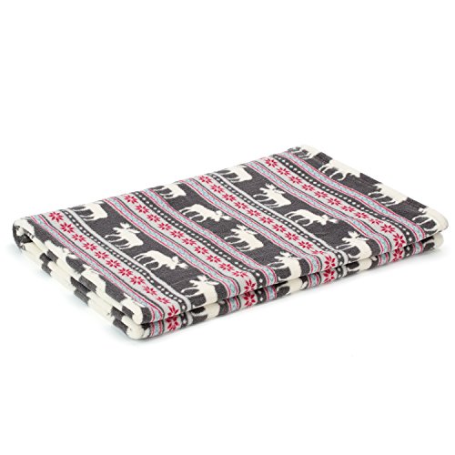 Stay warm with Cosmoz's new Holiday collection featuring the classic Canadian style Elk and Maple leaf pattern Christmas fleece blanket. This super soft multipurpose throw blanket will enhance your home decor and is suitable for all seasons. Charcoal Grey color with White Elks, lined with Red Maple leaves a tiny blue and white Geometry pattern. This Stunning Elk fleece blanket can be used as a throw for your living room sofa, bedding or will make a great gift.
