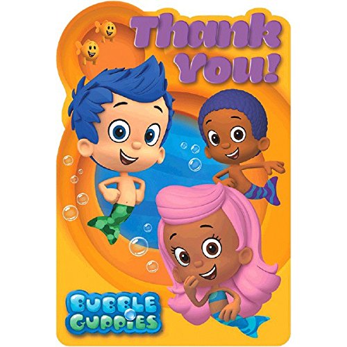 Amscan Aqua Awesome Bubble Guppies Birthday Party Postcard Thank You Cards, 6 x 4", Orange/Aqua Blue