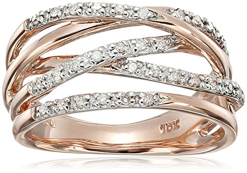 -. Title : 10k Rose Gold Woven Diamond Ring (1/7 cttw, I-J Color, I2-I3 Clarity)