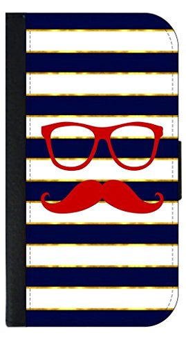 -. Title : Red Shades and Stache on Gold Print and Navy Stripes TM Leather and Suede Look Passport Cover with Double-Sided Design Made in the USA