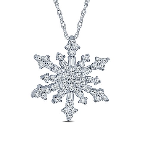1/4 cttw Round Baguette White Natural Diamond 925 Sterling Silver Snow Flake Pendant